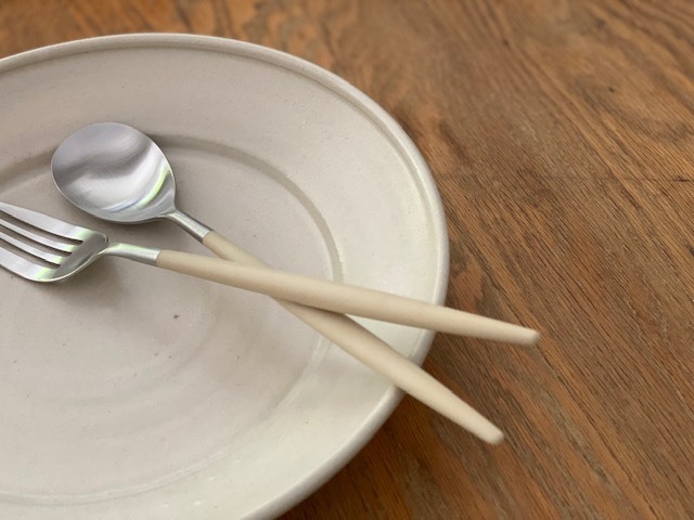 クチポール ミオ アイボリー×シルバー 〇デザートフォーク サイズ/19㎝ 重さ/18g 材質/ステンレスと樹脂 生産国/ポルトガル 食洗器△手洗いをおおすすめします。 〇デザートスプーン サイズ/19㎝ 材質/ステンレスと樹脂 生産国/ポルトガル 食洗器△手洗いをおおすすめします。 〇ペストリーフォーク サイズ/17cm 材質/ステンレスと樹脂 生産国/ポルトガル 食洗器△手洗いをおおすすめします。 GOAよりエレガントでソフトな曲線をコンセプトに作られたMIOシリーズ。 MIOという名前は日本をイメージして付けられたもので「日本語の美しい響きとイメージの名前をつけたい」。とのことから、日本の代理店と協議の上、たくさんの候補の中から選ばれました。 ハンドル部分はゴアの洗練さをそのままに、トップの部分を雫型にすることで、扱いやすさと場の雰囲気を盛りたてるカトラリーに仕上がっています。