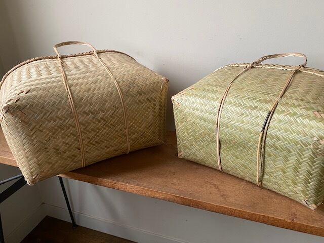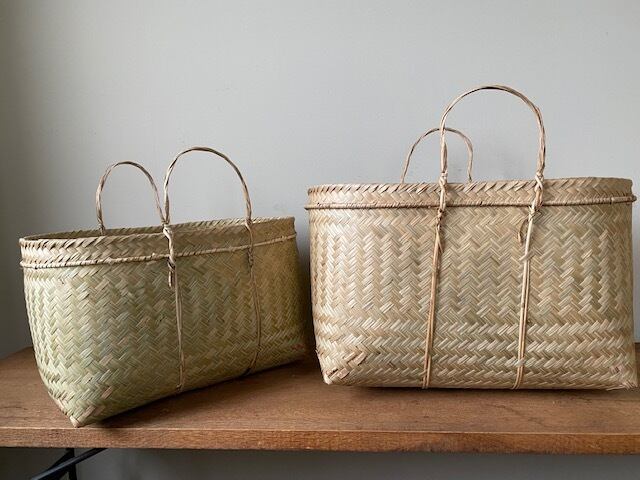 平面から立体に作られる様子は、日本岩手の篠竹の行李などと似てます。