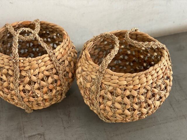 ホテイアオイと海藻を材料にベトナムで作られたバスケット。