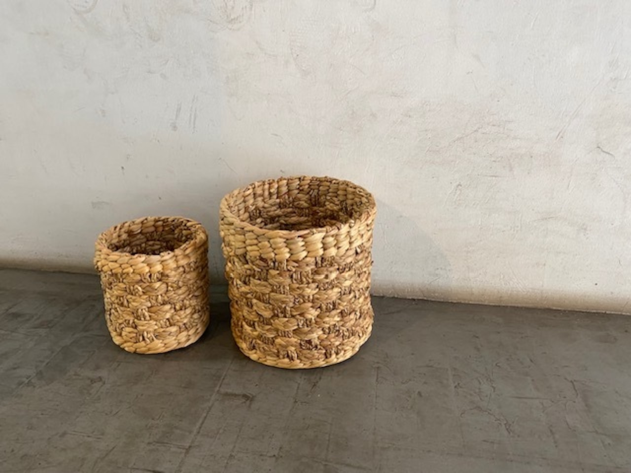 それをさらに市松模様に編んで作られた円筒形のバスケット。