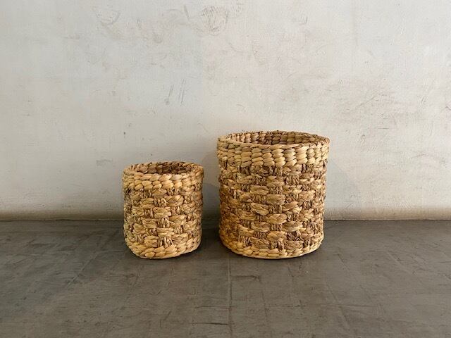 それをさらに市松模様に編んで作られた円筒形のバスケット。