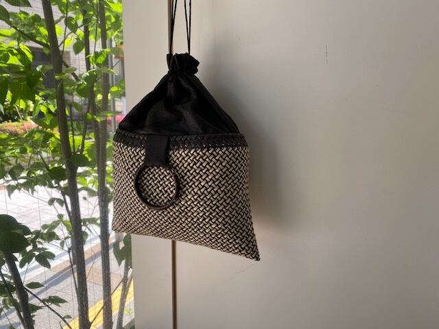 こちらは、シルク100%のファブリックや、ハンドメイドのグラスビーズと組み合わせた巾着。